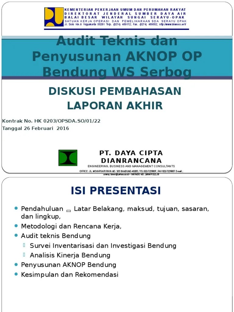 Contoh Laporan Aknop Saluran Irigasi - Artikel Sasaqgagah - Tim penyusun laporan audit teknis dan penyusunan aknop jaringan irigasi ws pos.