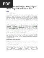 Rumusan deskripsi sesuai buku petunjuk yang diterbitkan direktorat jenderal contoh raport k13 kelas 1 sd. Contoh contoh deskripsi atau narasi atau catatan di raport contoh.